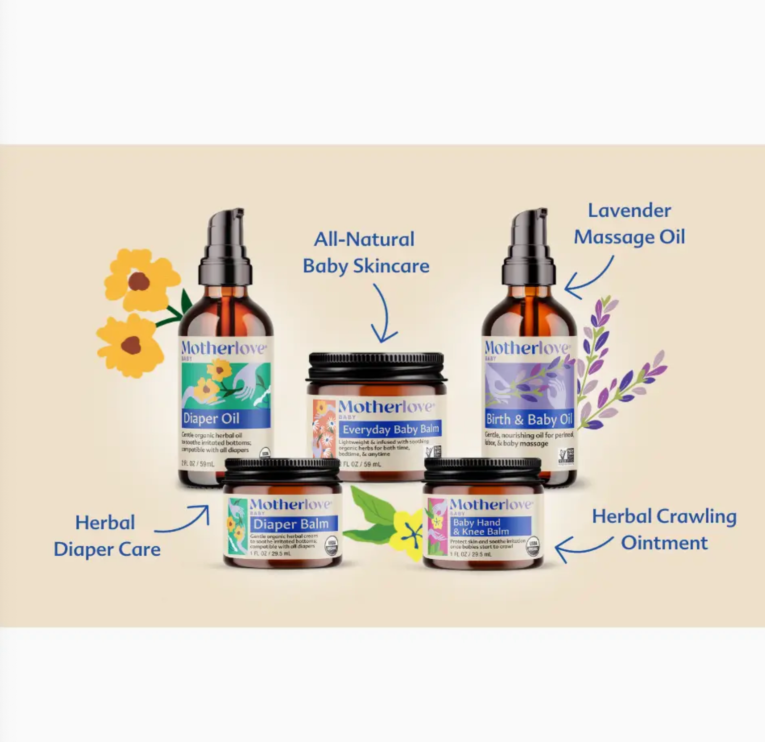 Motherlove's Baby Body Care Gift Box is 'n vooraf saamgestelde bondel van pasgebore liggaamsorg noodsaaklikhede.