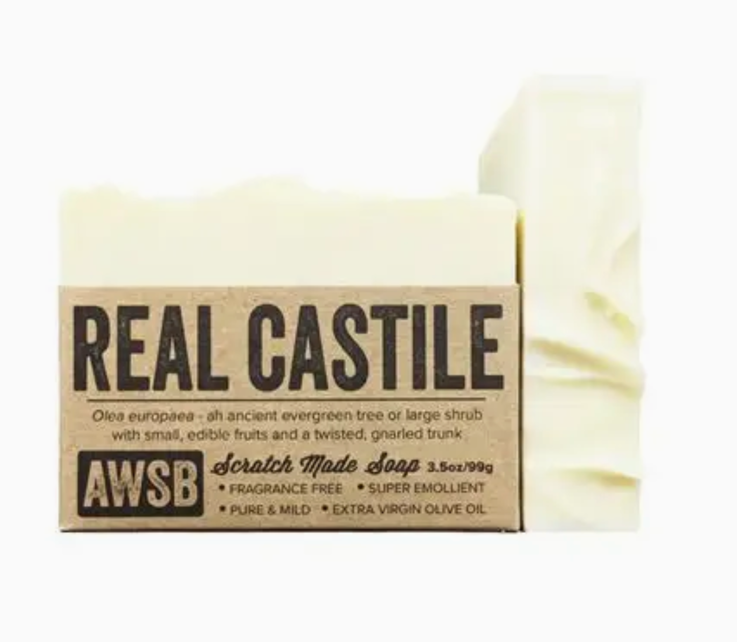 Our super mild, fragrance free castile soap contains saponified certified organic extra virgin olive oil, distilled water, and nothing else! For extra sensitive skin, multiple chemical sensitivity, and people who are allergic to coconut oil (found in most soaps).