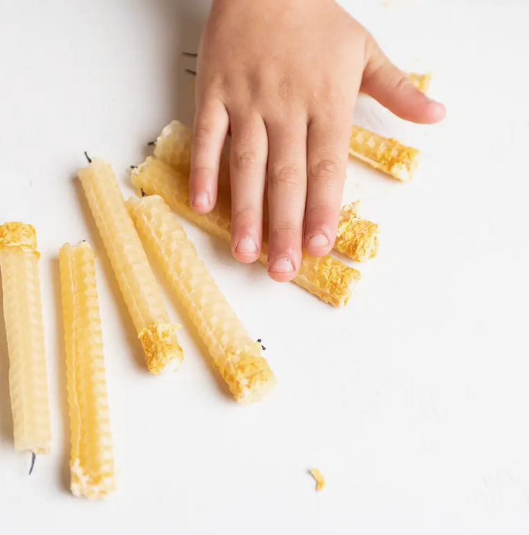 Sweet-smelling all-natural beeswax candles are easy to make and require no melted wax or special molds.