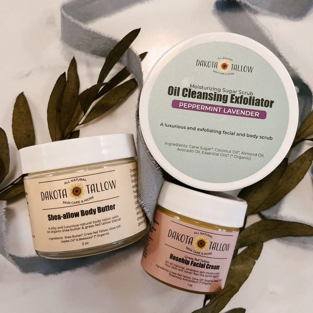 Drenk jou vel in hierdie luukse organiese mengsel van shea botter, talg en olyfolie! Hierdie lotion is ryk aan vitamiene A, D, E en K en is uiters voedend en bevogtigend aangesien dit droë en beskadigde vel genees en beskerm. Shea-botter help ons vel met natuurlike kollageenproduksie en talg gee ons selmembrane die nodige styfheid wat ons vel nodig het om ferm te bly, wat saam, shea-toelaat jou vel gekleur en gloeiend hou!