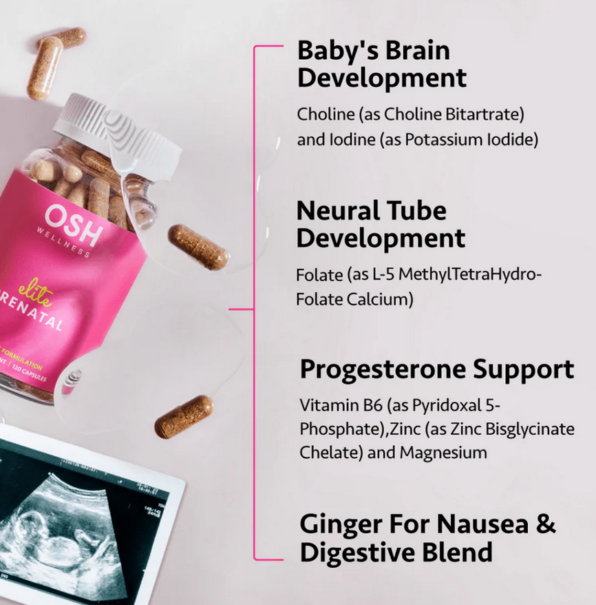 Verhoog jou voorgeboortesorg met Elite Prenatal deur Osh Wellness. Hierdie uitsonderlike formule bevat 'n premium mengsel van 26 noodsaaklike vitamiene en plantaardige bestanddele , ontwerp vir optimale absorpsie en voortreflike biobeskikbaarheid . Dit is aangepas vir beide voorveronderstelling en swangerskap en verseker dat jy die omvattende ondersteuning ontvang wat jy nodig het. Kies Elite Prenatal—want jy en jou baba verdien die beste!