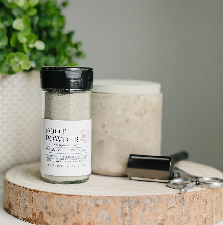 Our herbal foot powder is perfect for preventing and treating athletes foot.