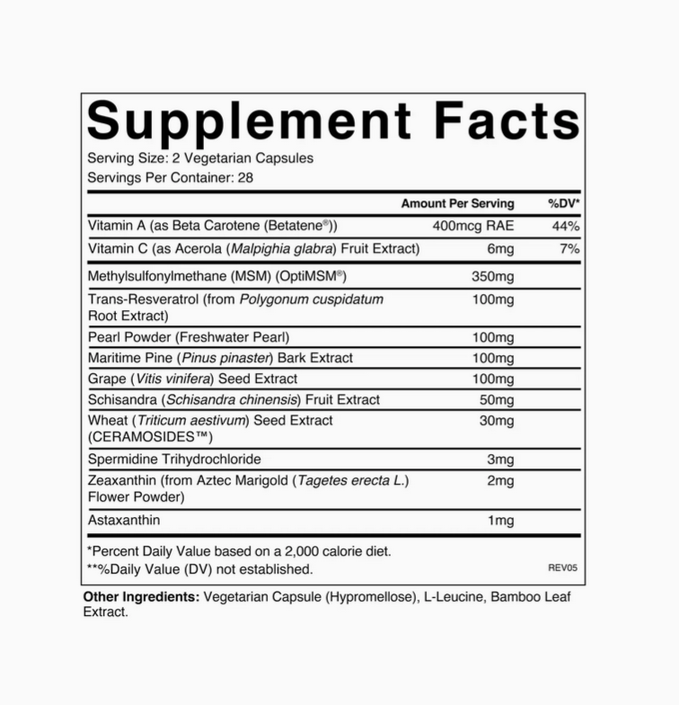 Our formula contains three potent compounds that combat premature aging: Spermidine, and Hyaluronic Acid. Spermidine mimics fasting and caloric restriction to induce autophagy, which limits inflammation and oxidative stress, the main culprits of aging and related diseases. Hyaluronic Acid promotes softer, healthier skin, which helps reduce the appearance of fine lines and wrinkles.