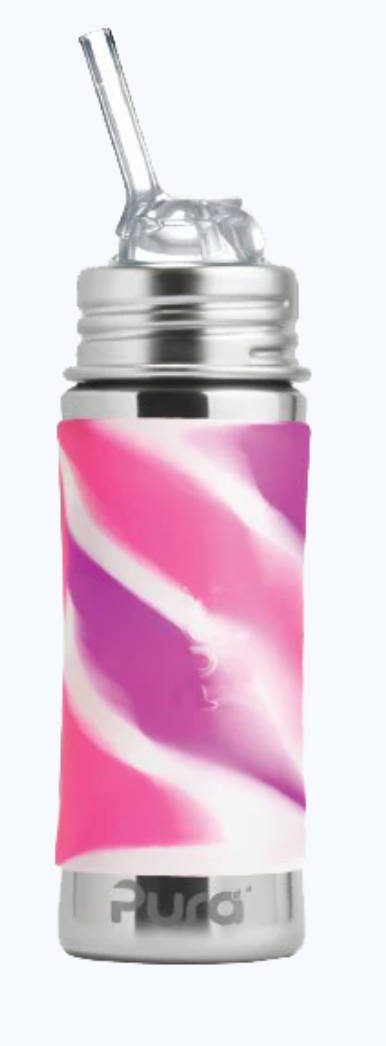 Pura Kiki® 11oz bottle with silicone Kiki™ Kiddo Straw, sleeve and travel cover. 6m+