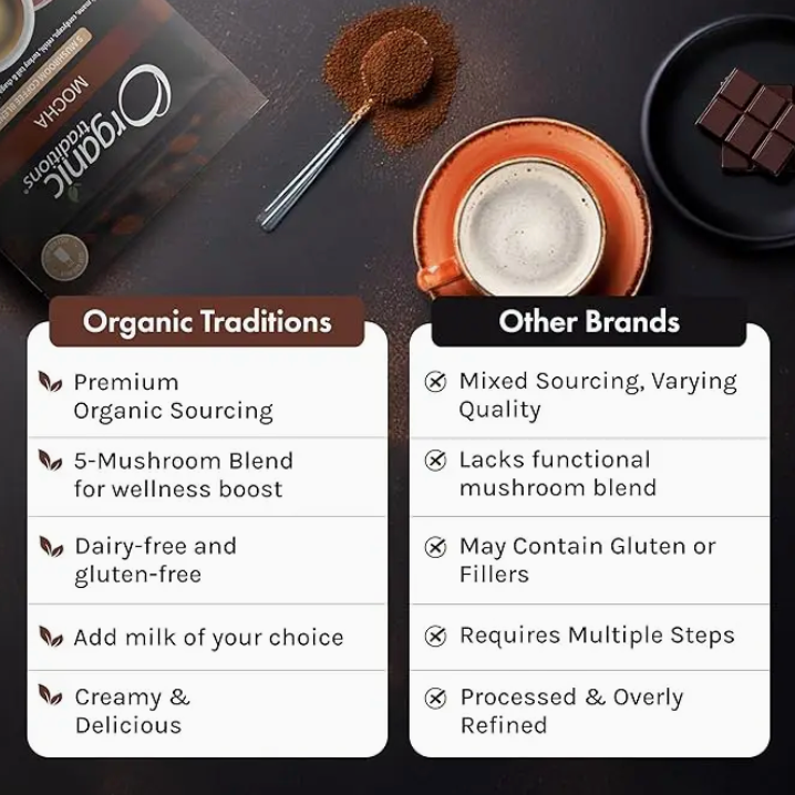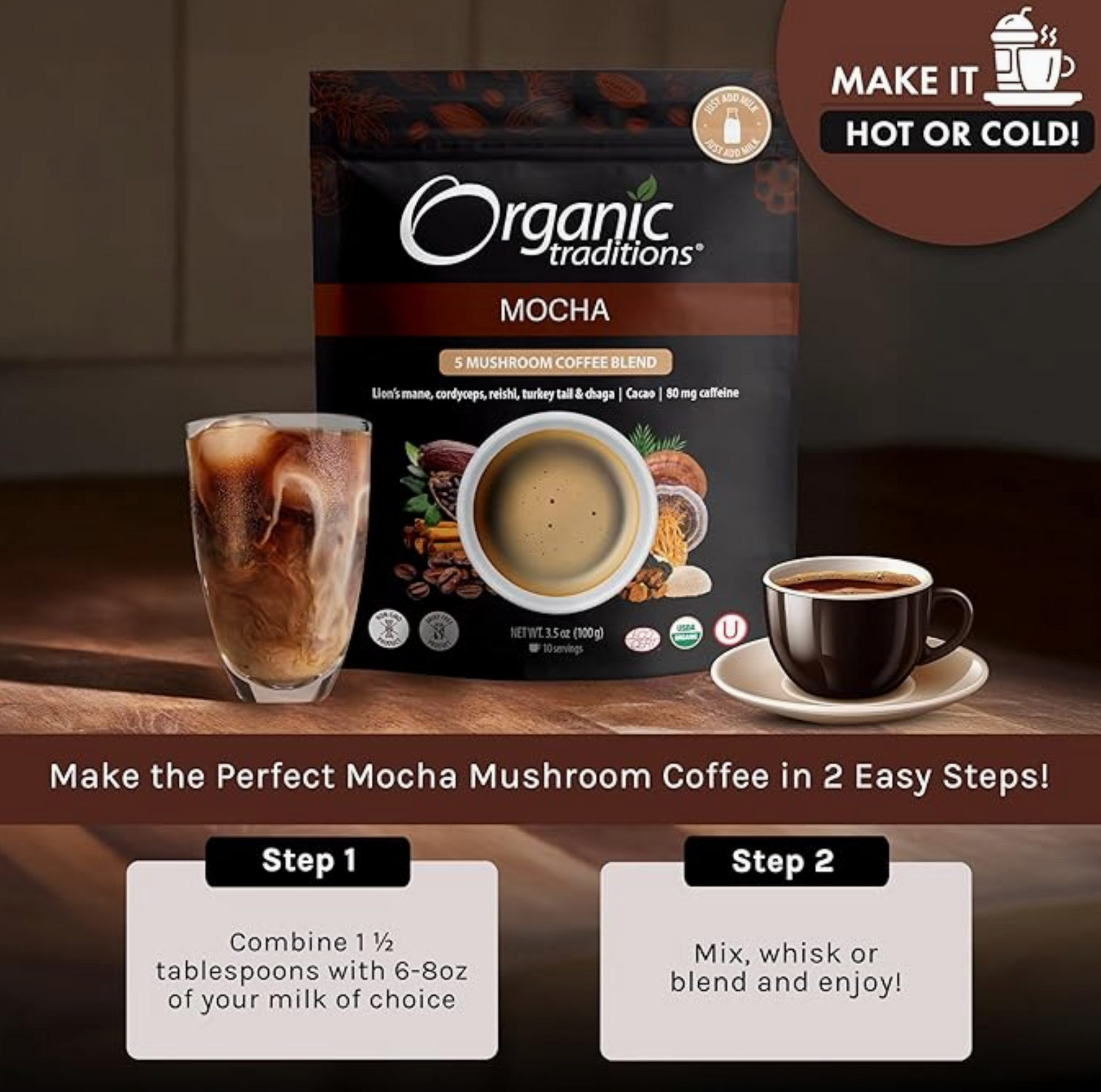 ☕Instant, just add warm milk of choice for a creamy and delicious mushroom coffee