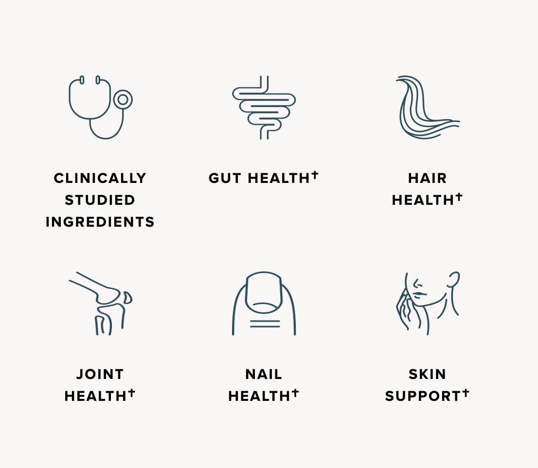 - Supports healthy hair, skin, nails, joints & gut†