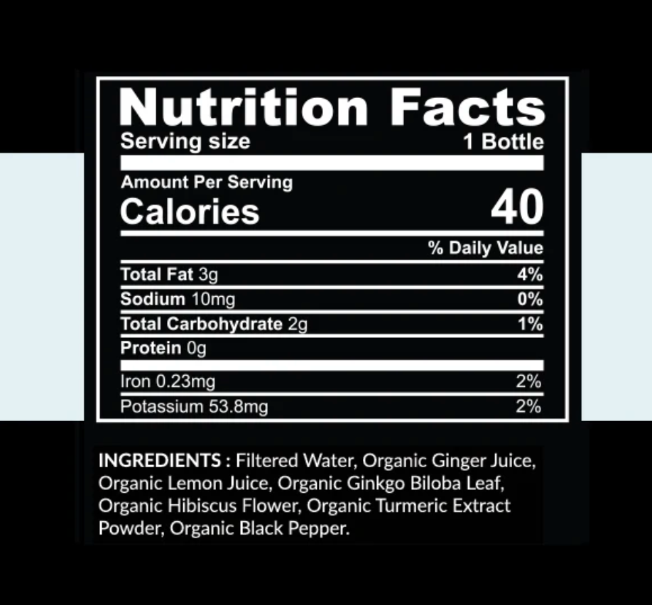 Delicious, ready-to-go daily wellness shots – packed with powerful herbs, juices, and plant extracts to help nourish and keep you healthy from the inside out! A mind-boosting combo of: Ginkgo Biloba with ancient roots for supporting overall cognitive function, anti-inflammatory Turmeric (AKA the “spice for LIFE!”) plus Black Pepper to help increase absorption, Ginger and Lemon Juice for overall immunity, and an anti-inflammatory zest of Hibiscus. FOCUS and drink to your health!