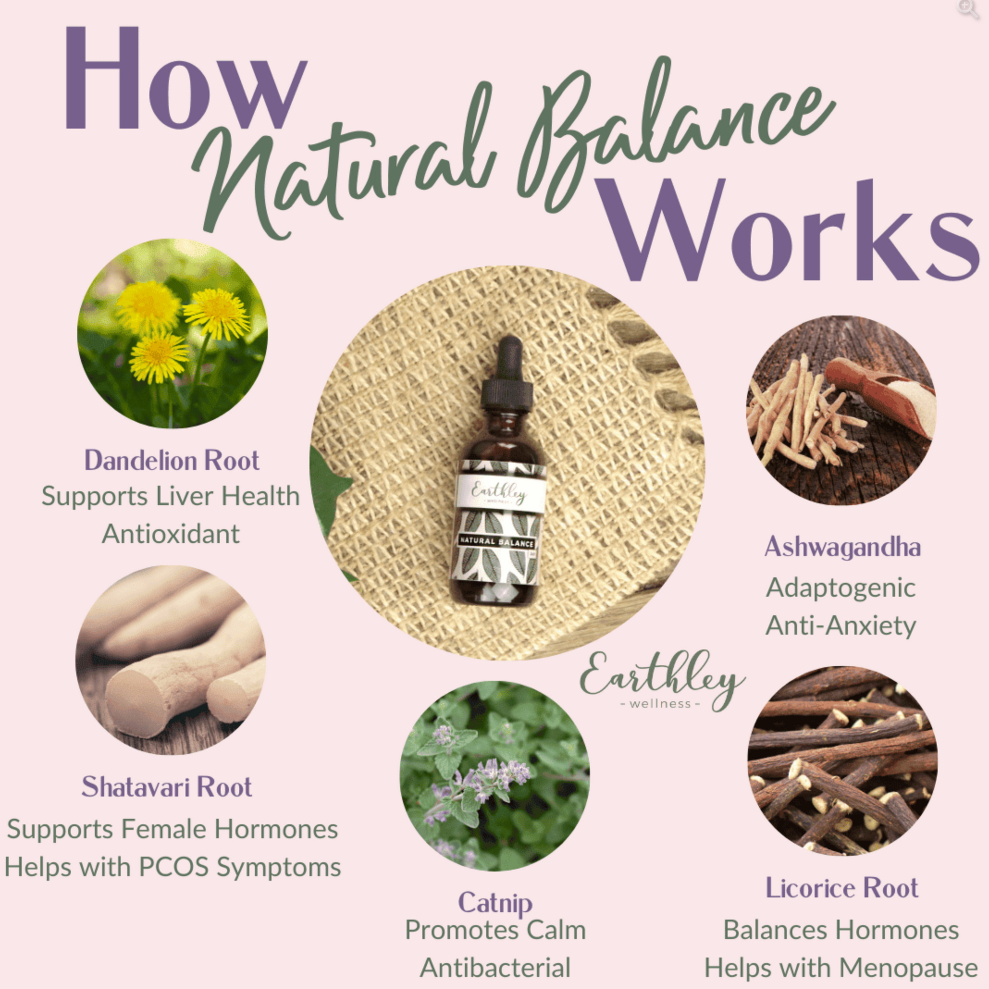 Eawrthley created Natural Balance to help with stress and its leading to weight gain, poor skin health, poor sleep, and much more. Oftentimes these issues can pop up or get worse after pregnancy and breastfeeding. Natural Balance can help!