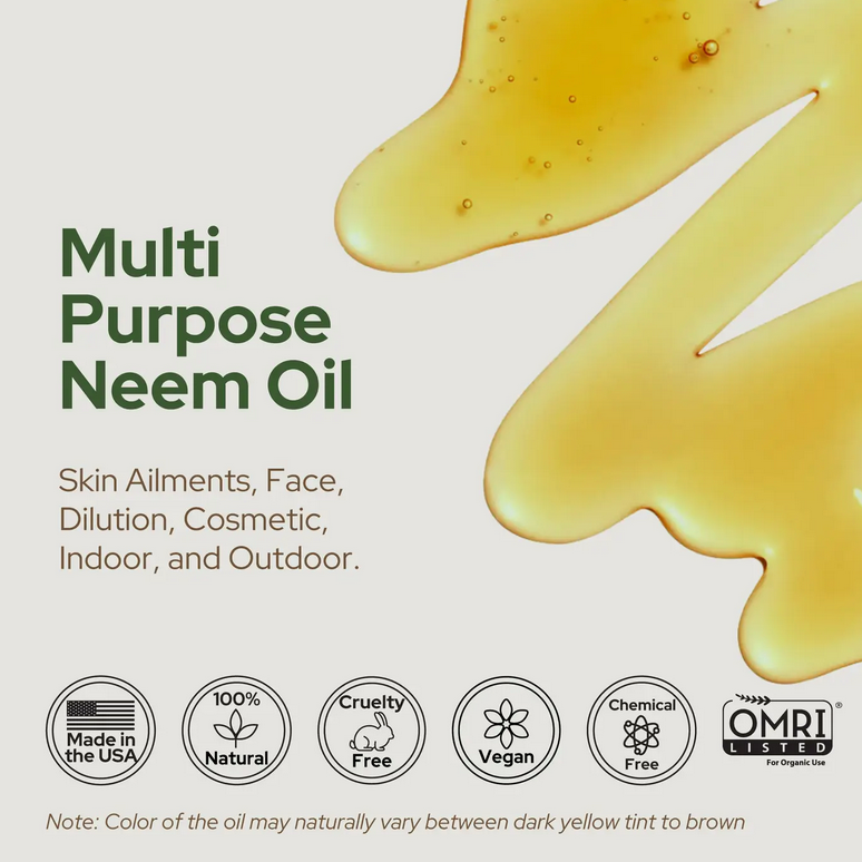Unlock the natural power of Neem Oil, a multi-purpose elixir that caters to both your gardening and skincare needs. Cold-pressed from organic neem seeds, this 946ml bottle offers an abundant supply of this miraculous oil for all your endeavors.