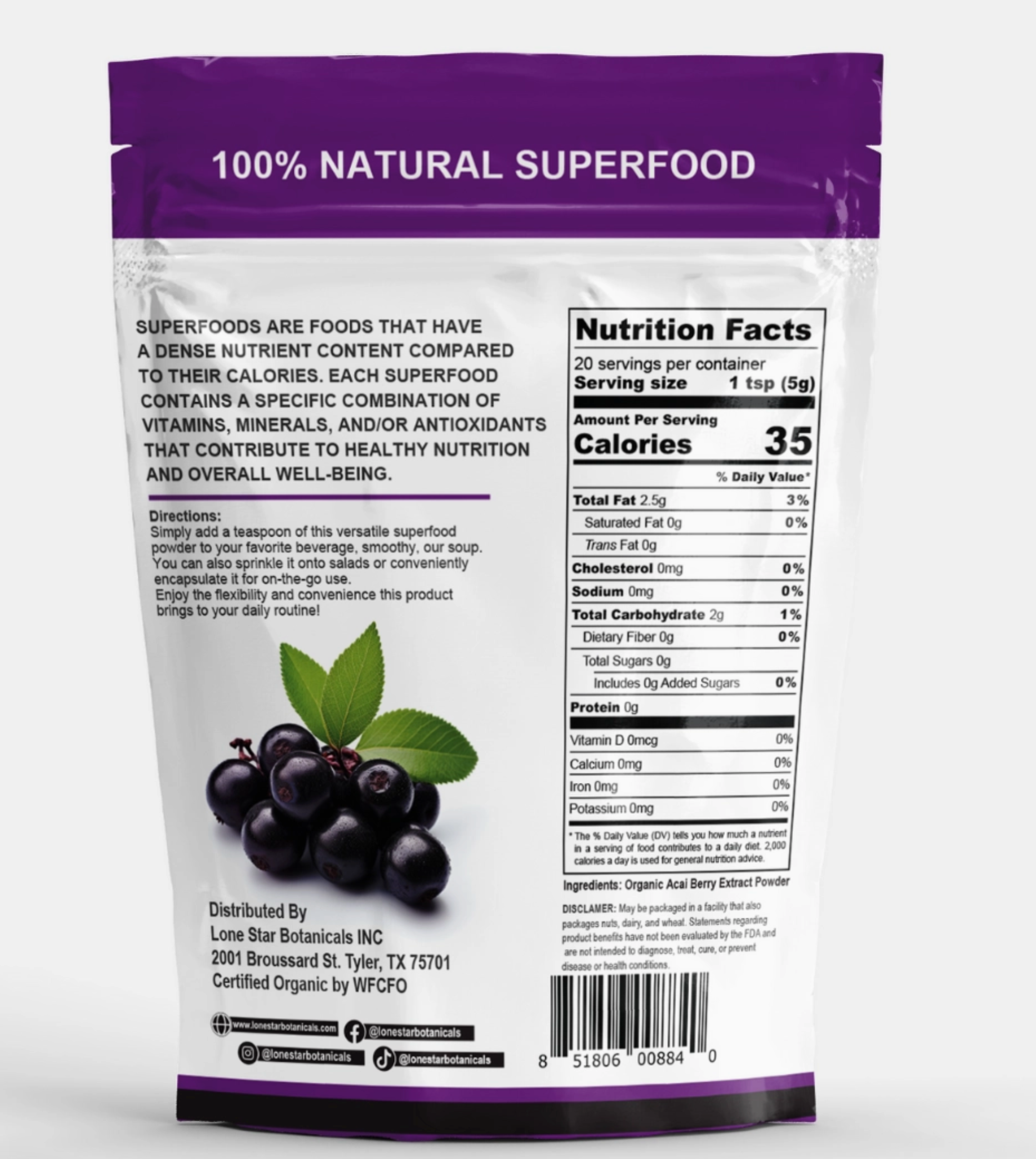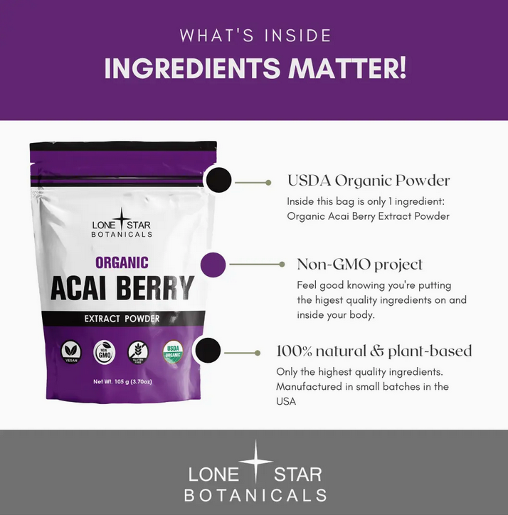 🟣 PURE SIMPLICITY: Our pouch contains solely organic acai berry extract powder—no fillers, no extras, just pure goodness.