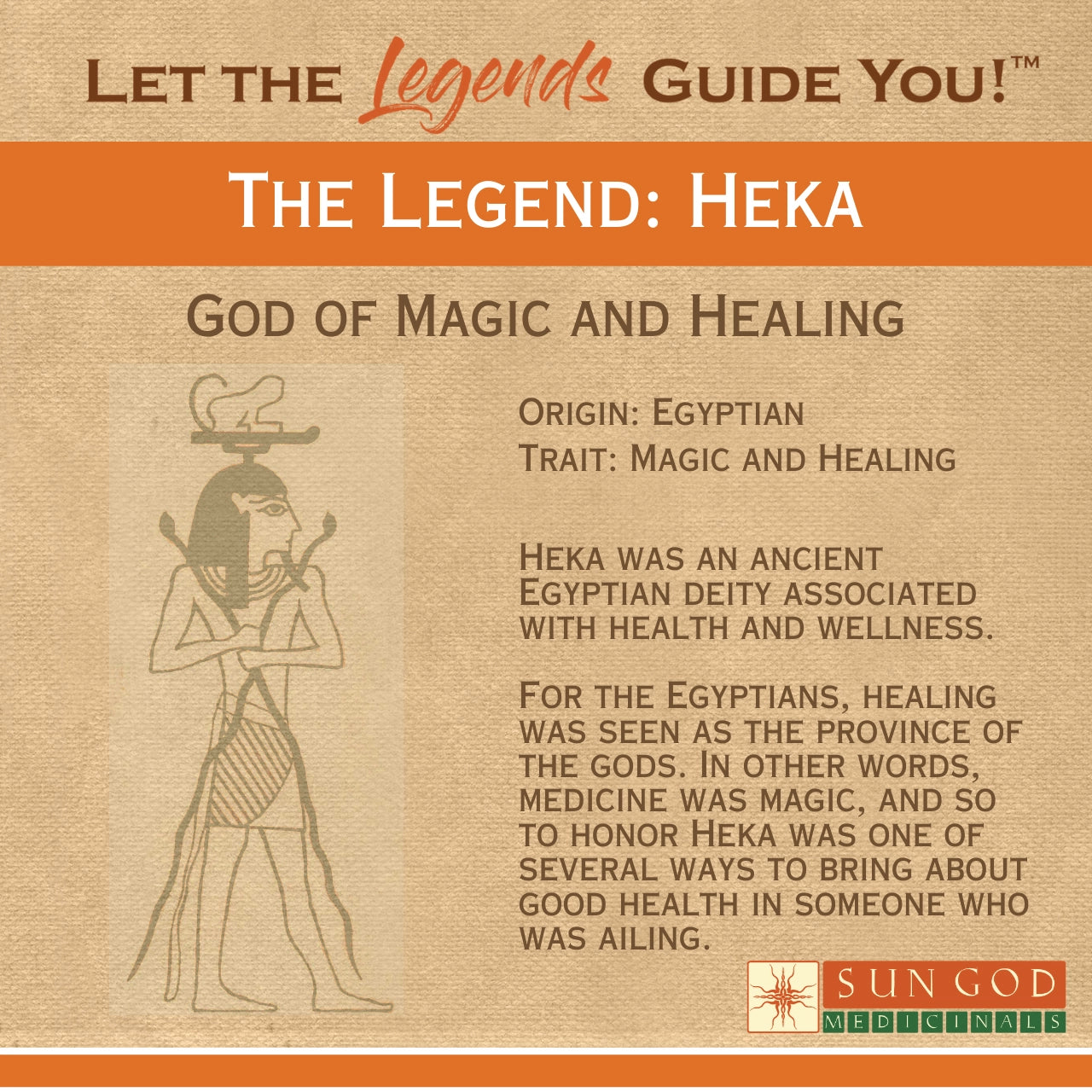 Mitologie: Heka was 'n antieke Egiptiese godheid wat verband hou met gesondheid en welstand. Die god Heka is deur praktisyns in medisyne geïnkorporeer.