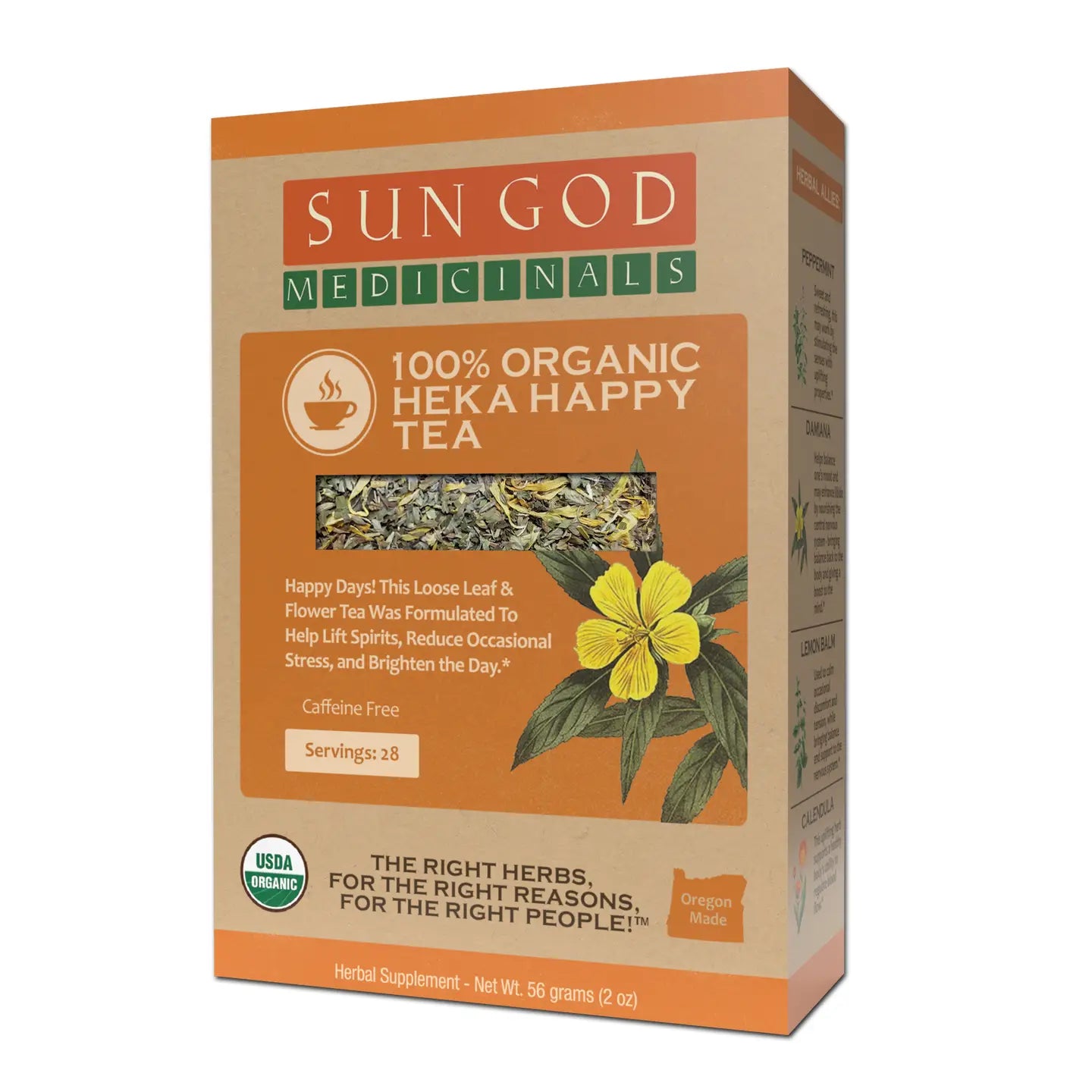 Hierdie heerlike opbouende gesertifiseerde organiese tee is bedoel om emosionele welstand deur die dag te bevorder. Kruie soos peperment, kalendula en suurlemoenbalsem kan help om die gees en liggaam 'n stimulerende hupstoot te gee. Drink 'n koppie van hierdie tee wanneer jy ook al die blink kant van dinge moet sien. Kan help met verligting van gevoelens van ligte hartseer, bekommernis en vrees.*