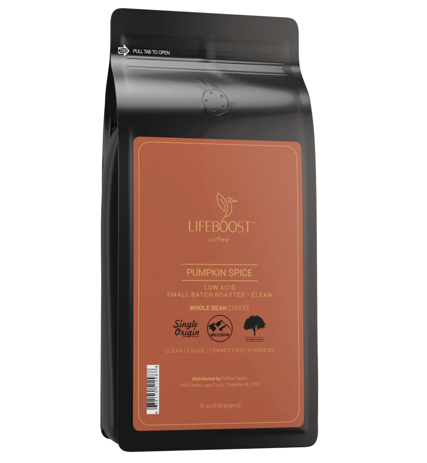 Your cup of Lifeboost Premium Pumpkin Spice Coffee comes from coffee beans that have been individually hand selected as the premium bean(s) of a harvest. Your coffee beans are lovingly cultivated by local farmers, after being grown slowly to full maturity in mountain shade.
