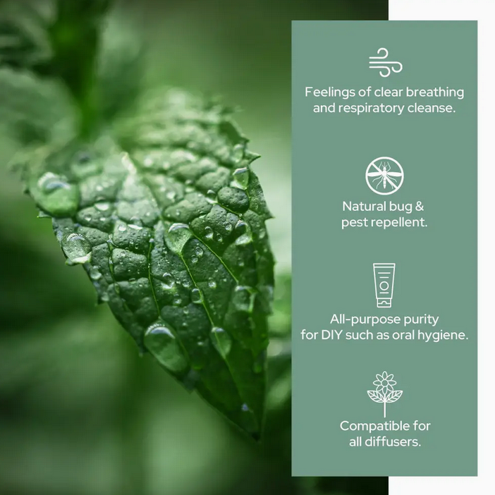 Versatile Benefits: Discover the endless possibilities of Peppermint Essential Oil. Use it for aromatherapy, massage, DIY skincare, haircare, or in diffusers to create an ambiance of freshness and vitality.