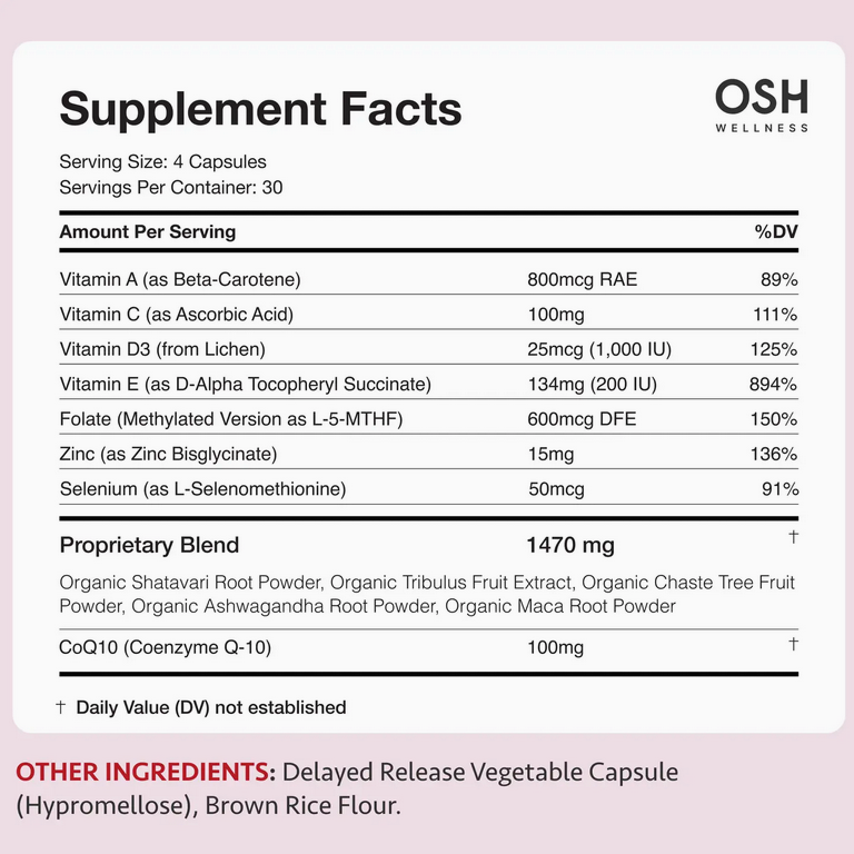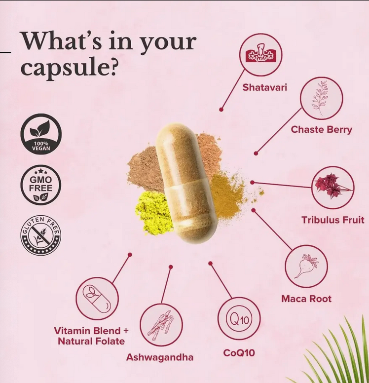 Ons kragtige mengsel van Ayurvediese plantaardige produkte, CoQ10, folaat en vitamiene help om kanse op bevrugting te verhoog deur hormonale en ovulatoriese siklusse te reguleer, eiergesondheid te verbeter en libido te bevorder.