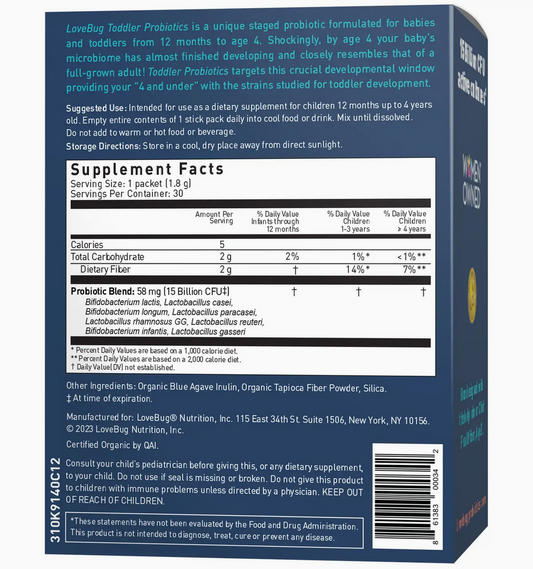 Toddler Probiotics 12 Months - 4 Years Organic (Powder) 30 Single Serve Stick Packs