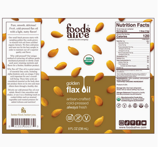 Gold Flax Seed Oil - Artisan Cold-Pressed, Organic