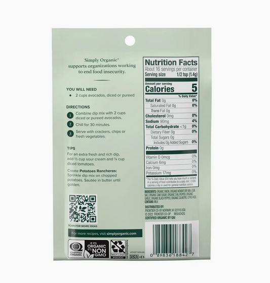 Guacamole Dip Mix, Certified Organic, Vegetarian, 0.8 oz