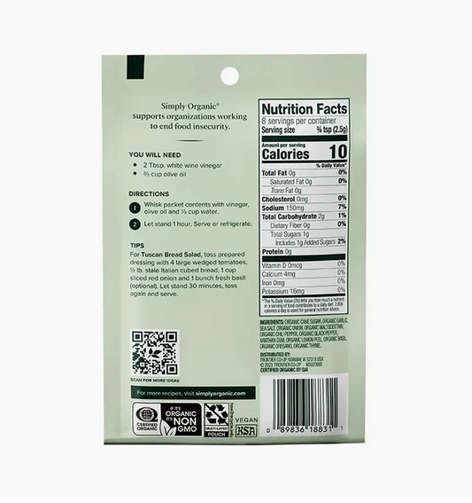 Italian Salad Dressing Mix, Certified Organic, Vegan, 0.7 oz