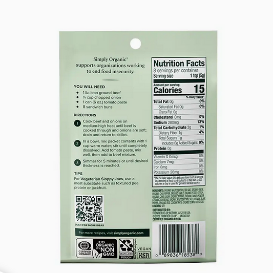 Sloppy Joe Mix, Certified Organic, Vegetarian, 1.41 oz
