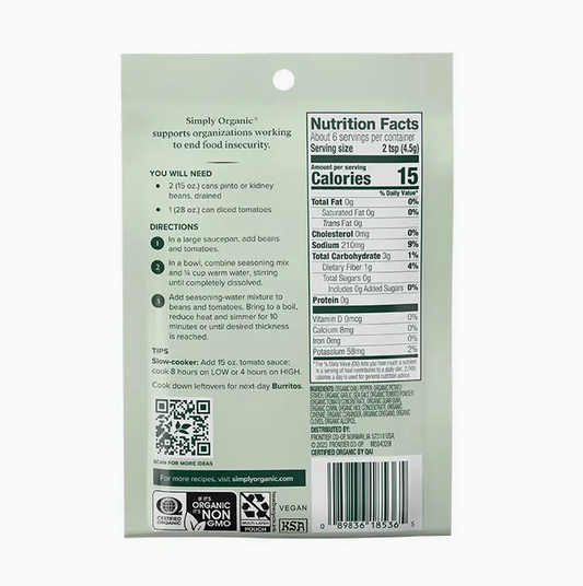 Vegetarian Chili Seasoning Mix, Certified Organic, 1 oz