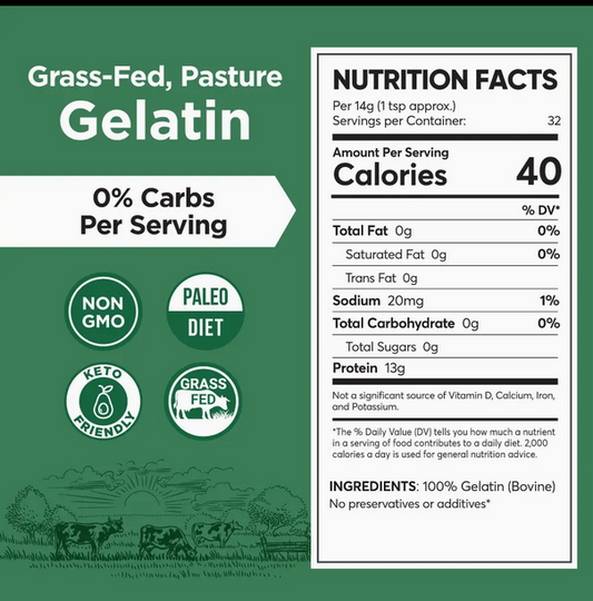 Gelatin Powder Unflavored | Grass-Fed Beef | (8 oz / 240g)
