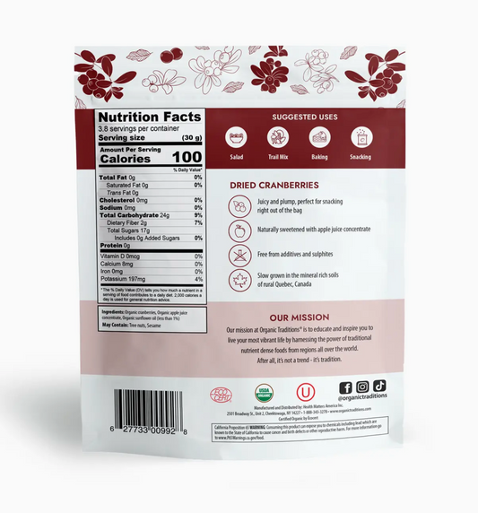 Organic Dried Cranberries - 4 oz (113g)