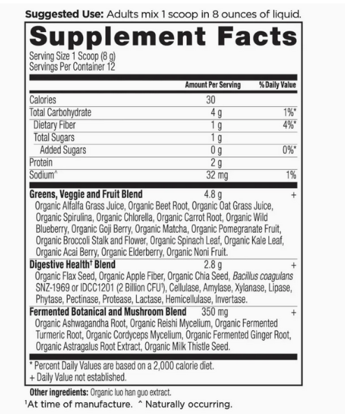 Organic Supergreens | Powder Greens Flavor (12 Servings)