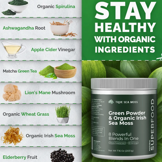 Sea Moss Green Superfood Blend with Spirulina, Ashwagandha