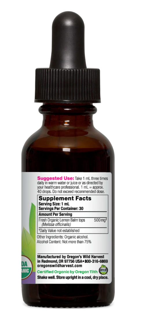 Fresh Lemon Balm Tincture 1oz