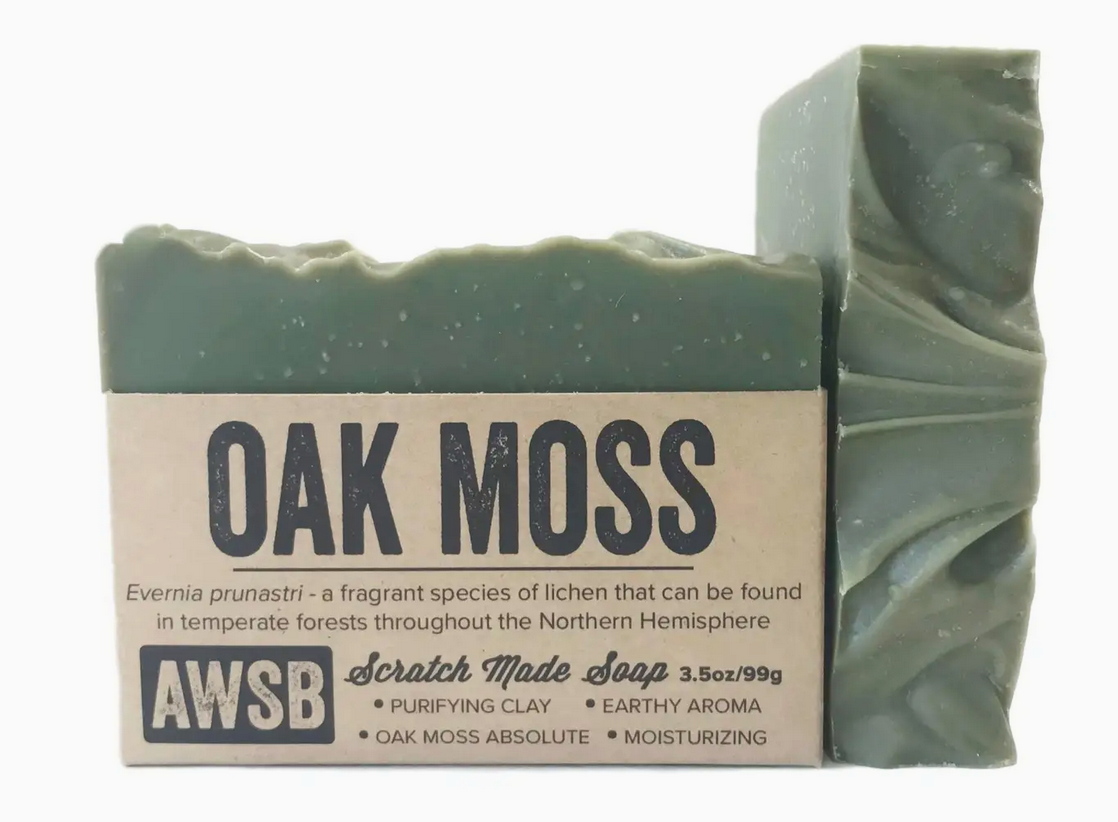 Utilizado como fijador, el musgo de roble no solo mejora la duración del aroma, sino que también le da un aroma terroso y a bosque a nuestro jabón de musgo de roble. ¡Un aroma tradicional para hombres, pero a las mujeres también les encanta! Jabón en barra de 3,5 oz, en caja.