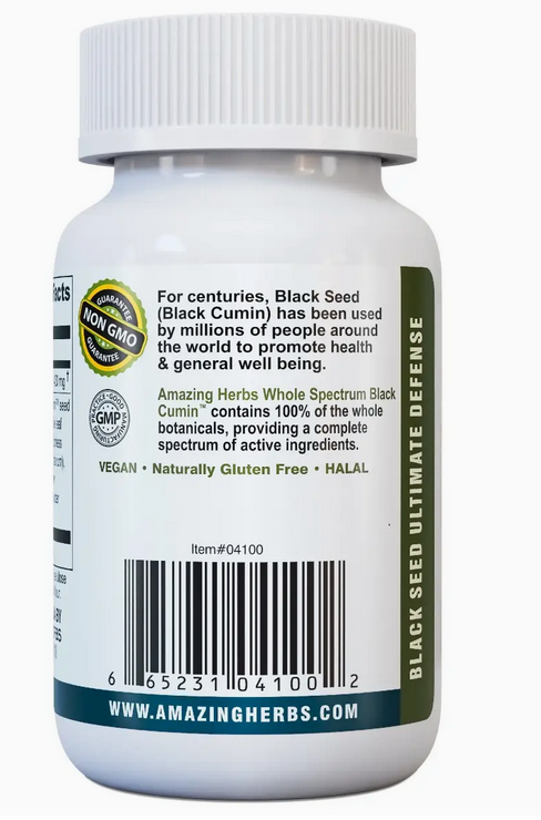 Amazing Herbs designed a potent combination of Black Cumin Seeds with Olive oil, Garlic, Ginger, and Cayenne to deliver various health benefits. Our Whole Spectrum™ Black Seed Ultimate Defense formula is specifically formulated for individuals looking for better life quality and an all-in-one immunomodulatory supplement. This special combination significantly optimizes cardiovascular function, promotes digestive health, and preserves lung integrity, thereby boosting general health and well-being. Additionally, this formulation delivers potent bioactive compounds that possess antioxidant, anti-inflammatory, and antimicrobial activities.