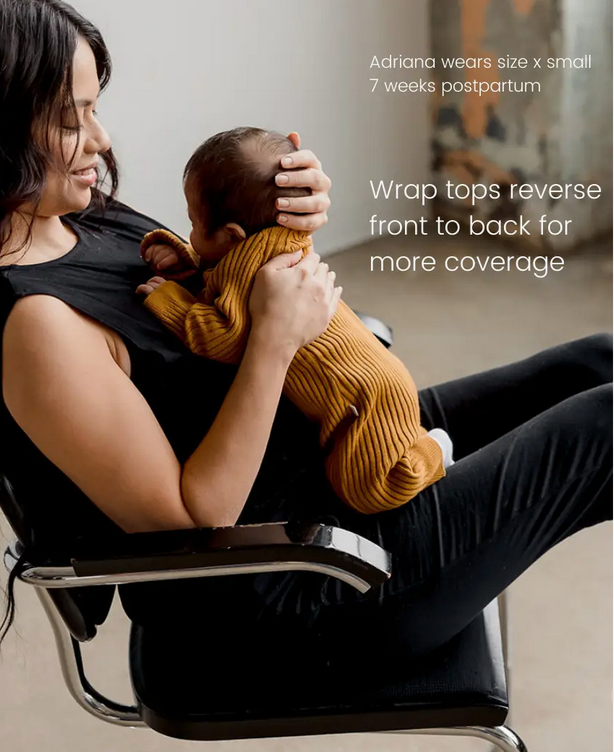 * Can be reversed for elevated crewneck look. Wrap all the way around for slim fitted style postpartum and beyond.