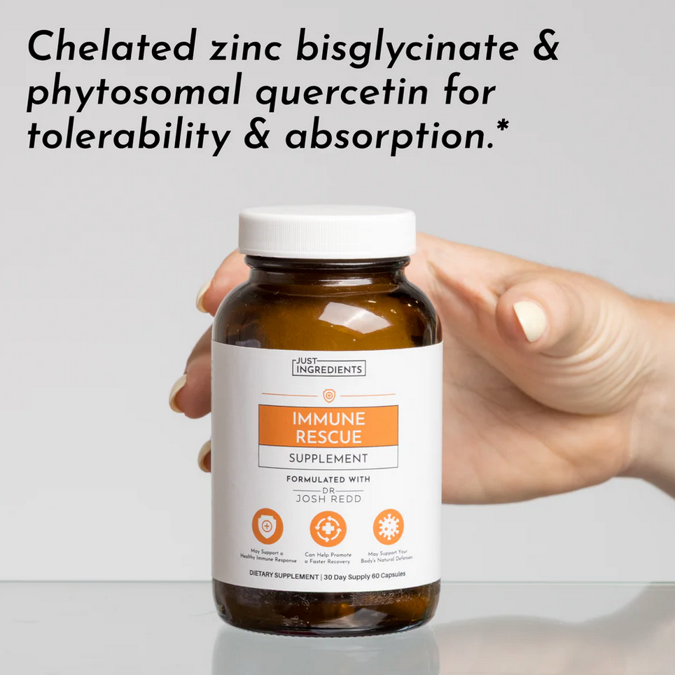 Make sure you’re prepared for when you or those around you are feeling run down. Immune Rescue combines a unique blend of herbs, botanicals, and minerals to help your body stay strong and resilient.* Zinc may support cellular function,* while olive leaf, garlic, elderberry, echinacea, maitake mushroom, and astragalus are all traditionally used in herbal wellness practices to help the body respond to external stressors and support vitality. Elderberry and echinacea also contribute antioxidant activity, helping to protect cells from free radical damage.