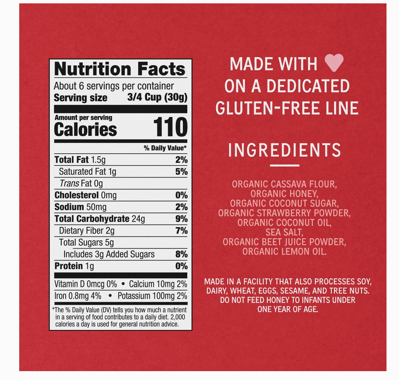 Siempre: orgánico, sin granos, sin gluten, sin lácteos, sin OGM, SIN azúcares refinados y SIN edulcorantes de alta potencia como stevia, monkfruit o sabores "naturales".