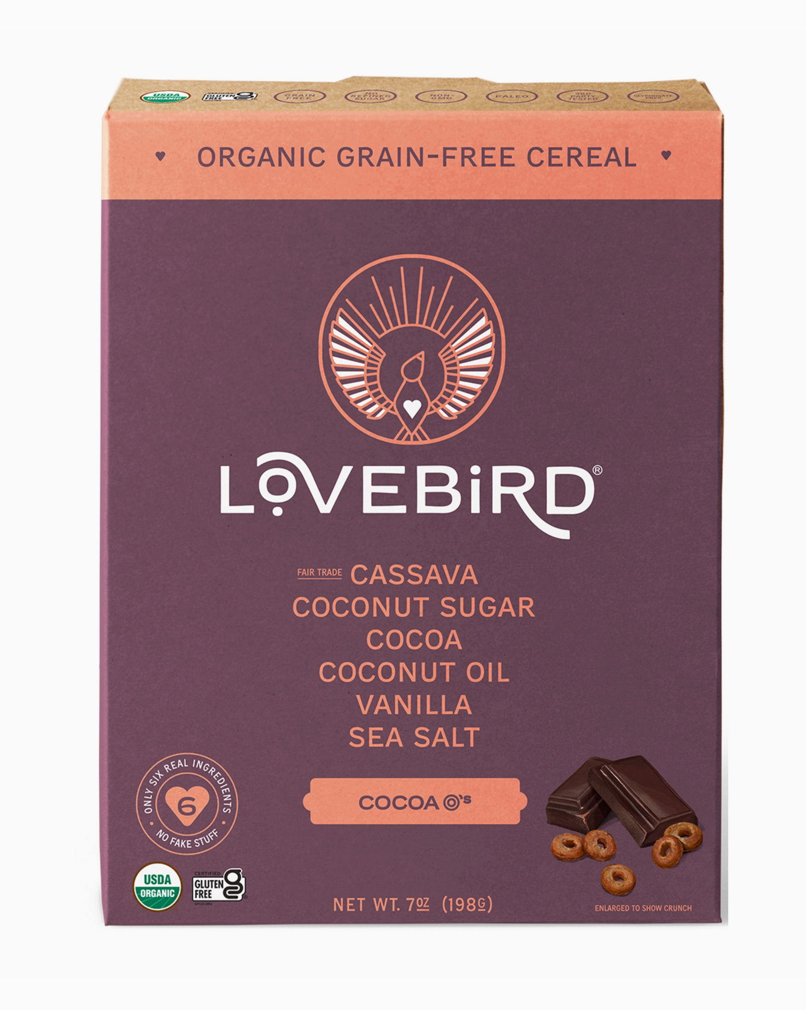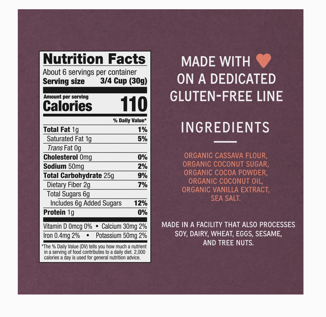 Cacao: ligeramente endulzado con cacao y un toque de miel orgánica para lograr un crujiente sabor a chocolate oscuro y tostado.