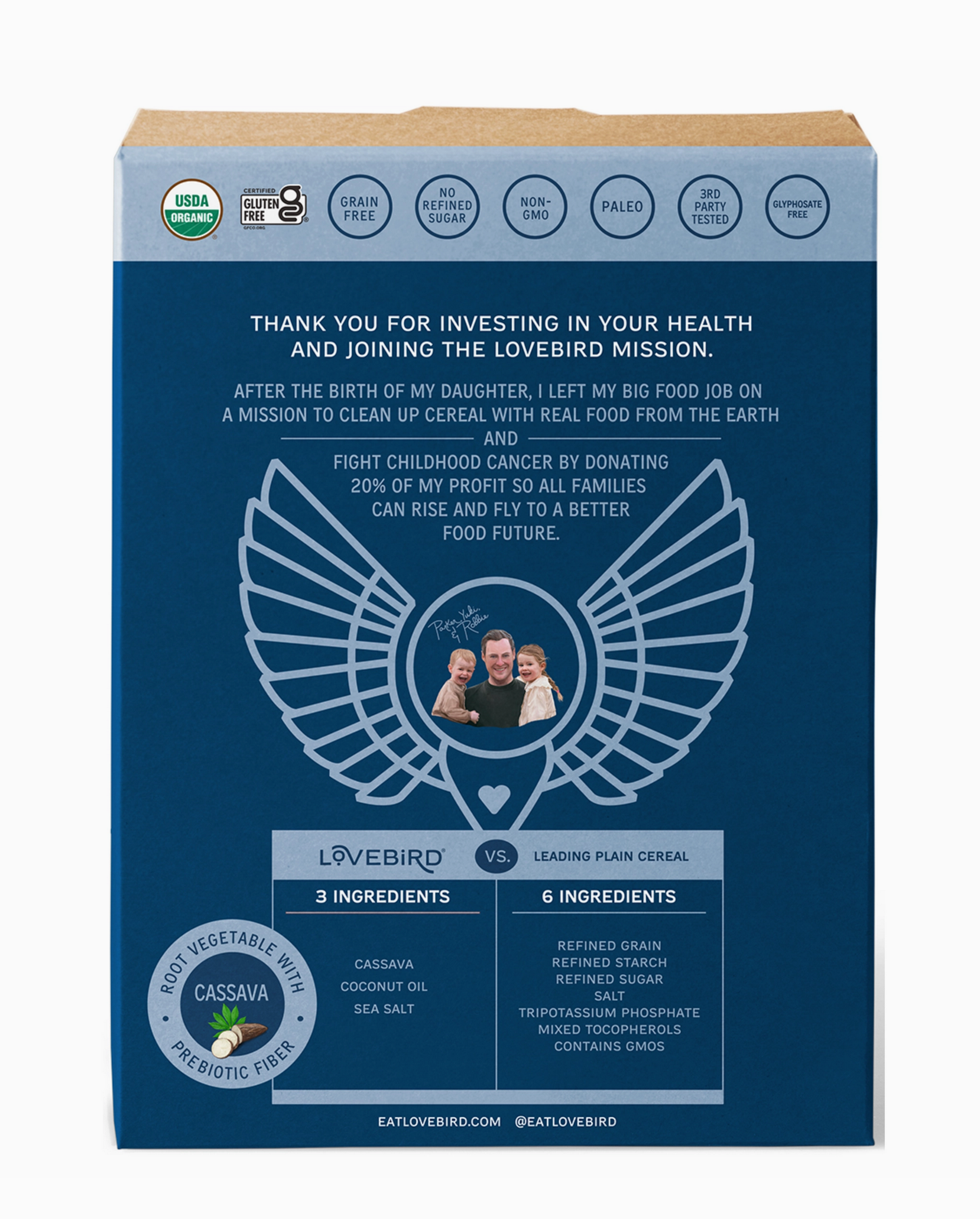Siempre: orgánico, sin granos, sin gluten, sin lácteos, sin OGM, SIN azúcares refinados y SIN edulcorantes de alta potencia como stevia, monkfruit o sabores "naturales".