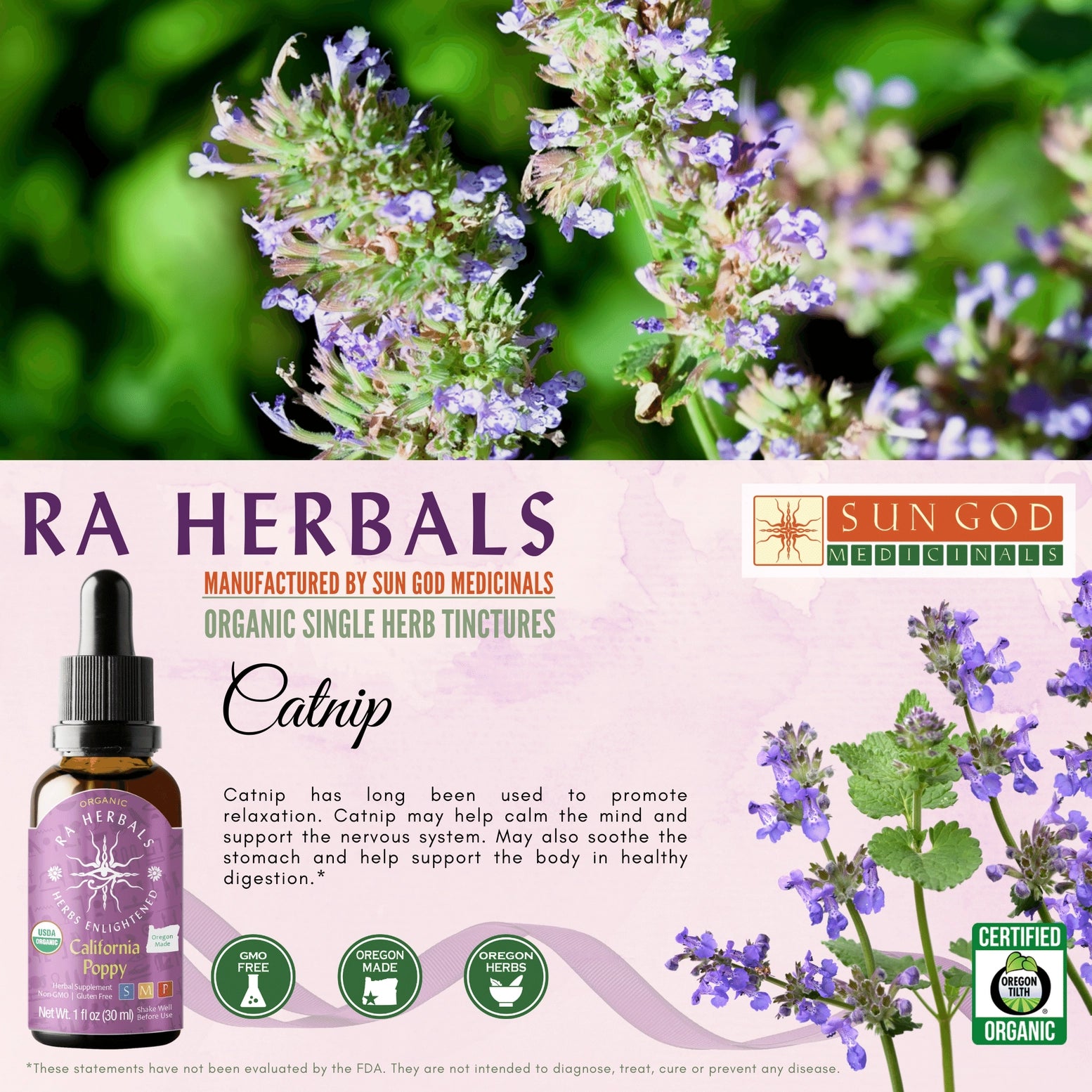 La línea Ra Herbals se centra exclusivamente en extractos de una sola hierba del sur de Oregón. Estas tinturas se extraen mediante un método lento de procesamiento en frío que los herbolarios practican desde hace miles de años. Solo utilizamos hierbas medicinales orgánicas certificadas o recolectadas de forma silvestre en nuestros productos. Todos nuestros productos se fabrican en los EE. UU. por personas trabajadoras que realmente se preocupan por lo que hacen. Esto se refleja en la calidad de nuestros productos.
