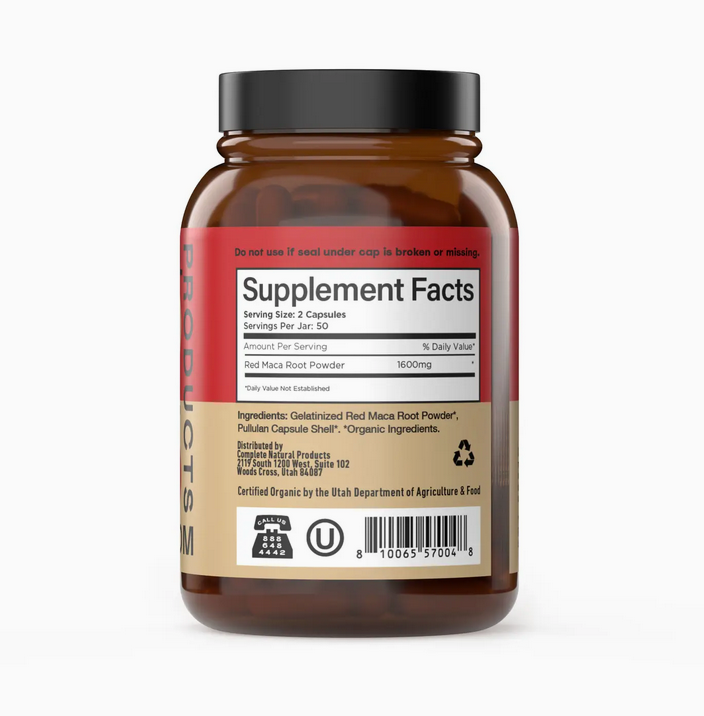 Organic Maca Root Capsules are a pure and natural source of beneficial hormones, nutrients, and health benefits. Our capsules contain real red maca root, known to aid in improving mood and maintaining hormone balance. Get the health benefits without the hassle with our easy-to-take capsules.