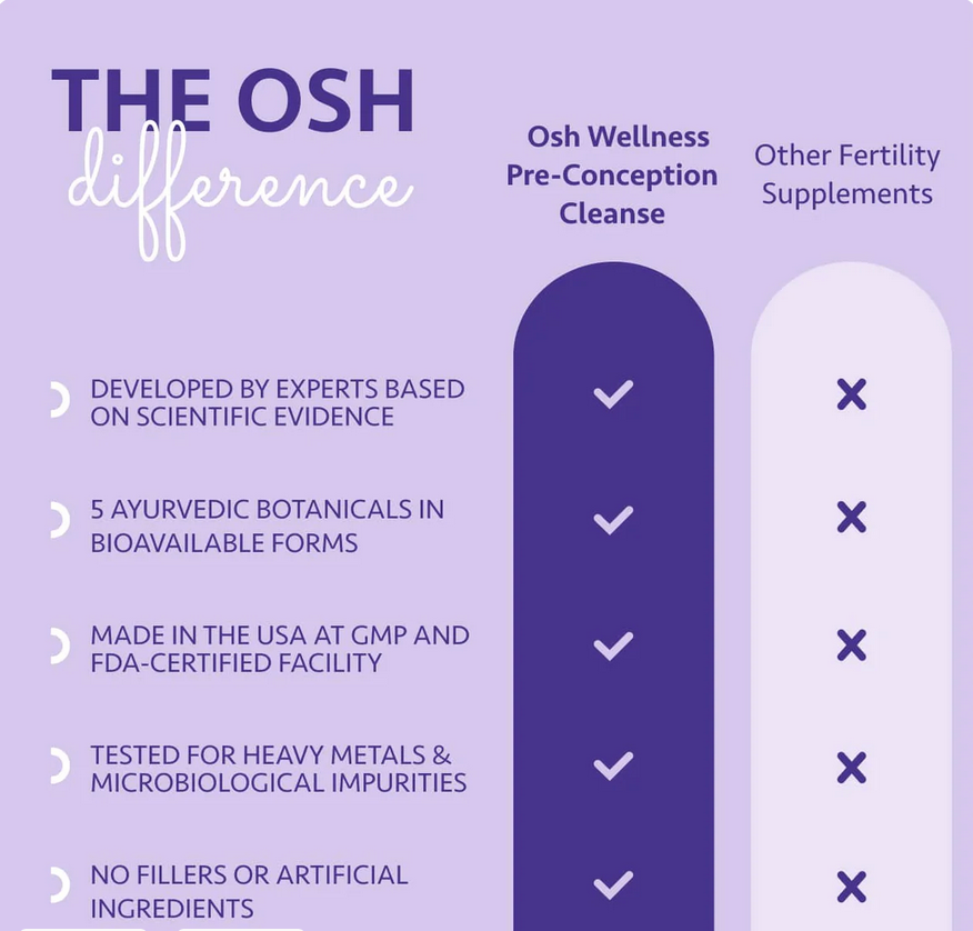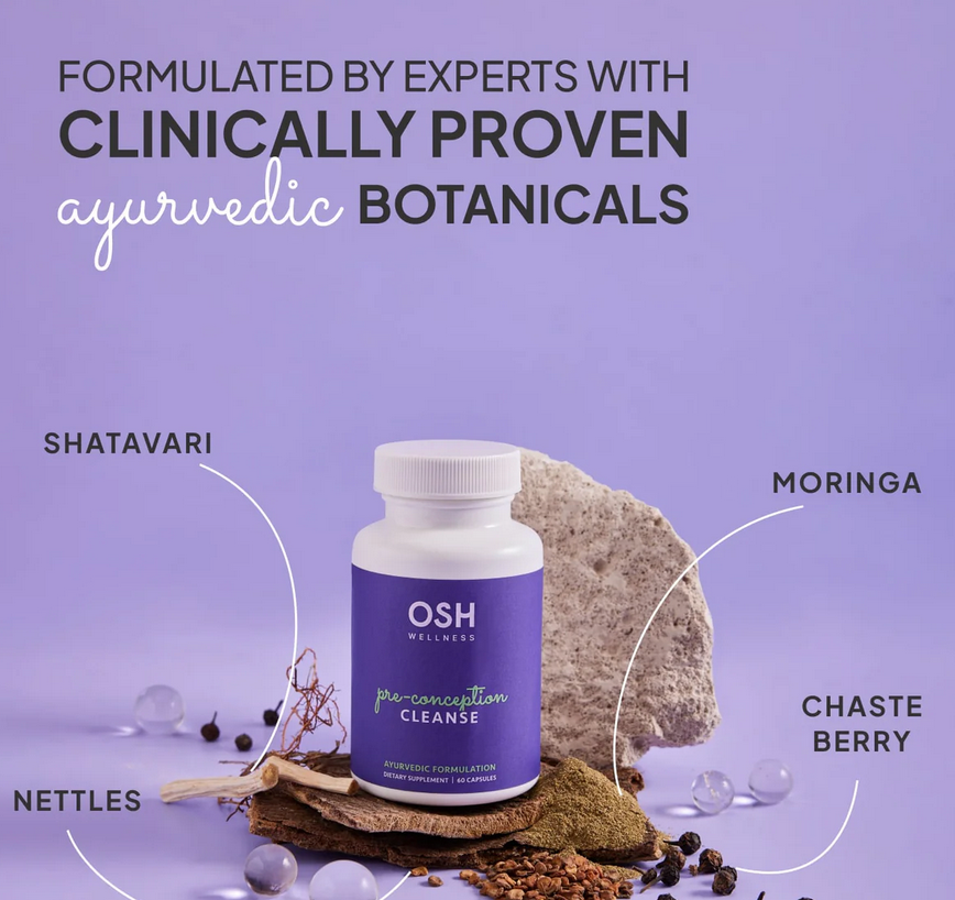 Pre-Conception Cleanse está elaborado con 5 ingredientes botánicos ayurvédicos respaldados por evidencia que se sabe que ayudan a restablecer el equilibrio hormonal: