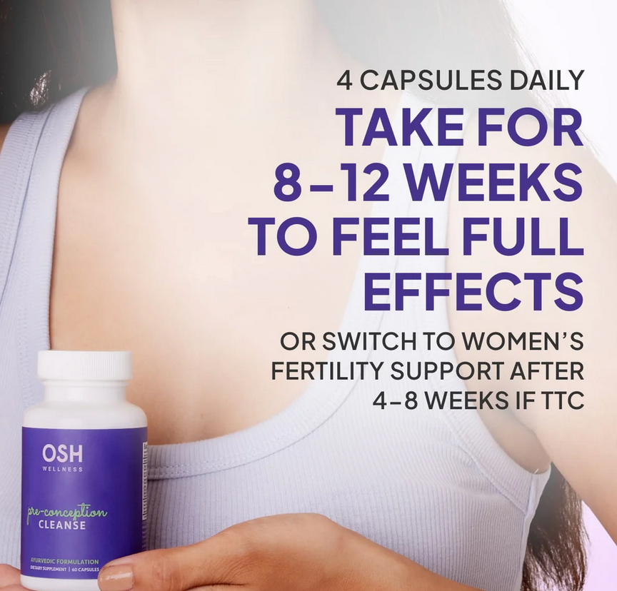 La mayoría de las mujeres comienzan a notar una mejora en su salud hormonal en el transcurso de un ciclo menstrual. Recomendamos tomar Pre-Conception Cleanse durante 2 o 3 meses para una limpieza completa o cambiar a Women's Fertility Support después de 1 mes si está intentando concebir.
