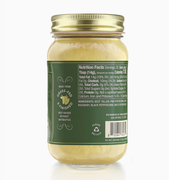 At FOND, our battle cry is bonne sante; to your good health. We believe we created our tallow to bring even more nutrition and flavor back into your kitchen, all while prioritizing nose-to-tail animal sourcing. Our beef tallow is the first regeneratively-sourced tallow on the market, and it’s packaged in glass to ensure no plastic leaches into your precious nourishment.