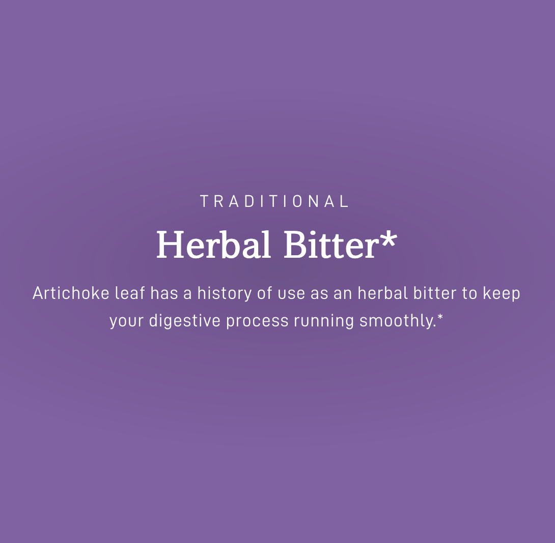 Artichoke leaf has a history of use as an herbal bitter to keep your digestive process running smoothly.