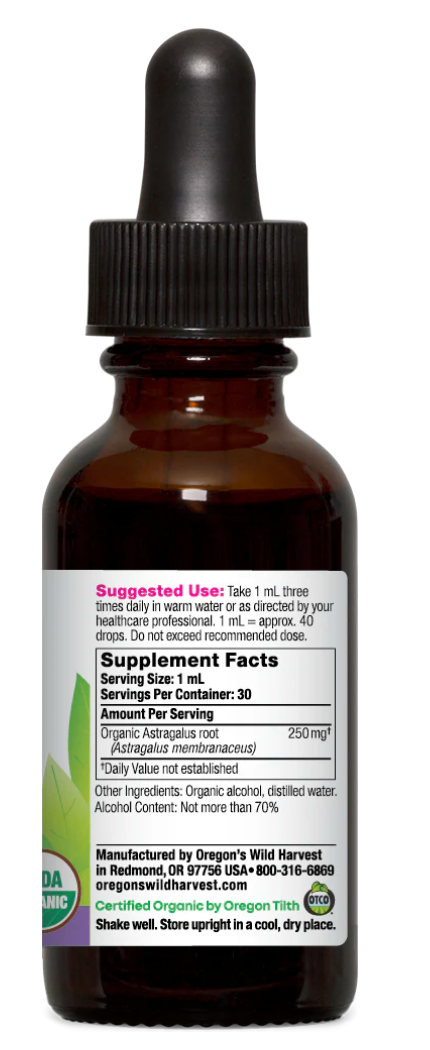 Non-GMO, USDA certified organic Astragalus root liquid herbal extract prepared with love for optimum potency.