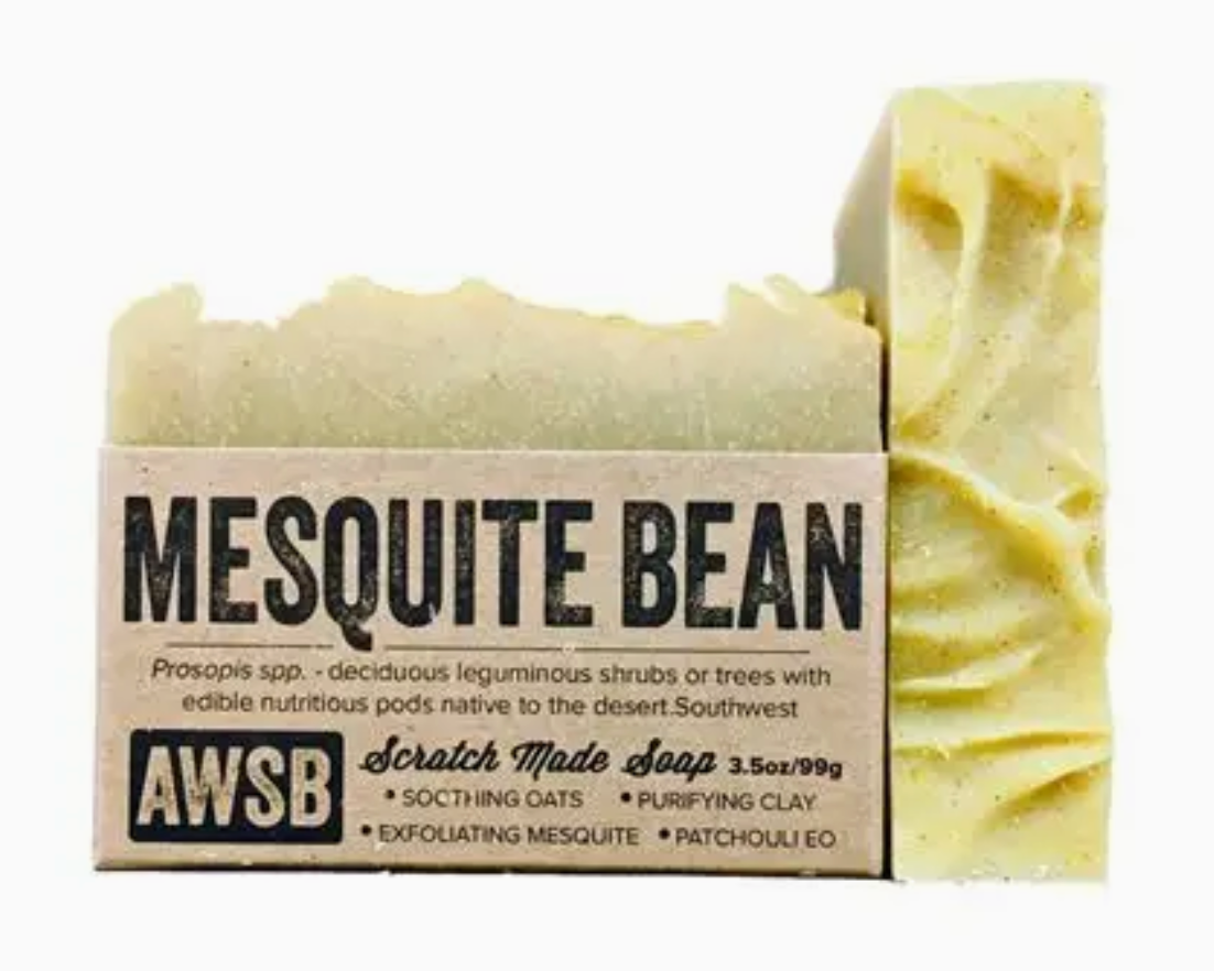 An earthy patchouli essential oil blend with exfoliating, responsibly wildcrafted mesquite bean flour and soothing organic oats. 3.5 oz. bar soap, boxed.
