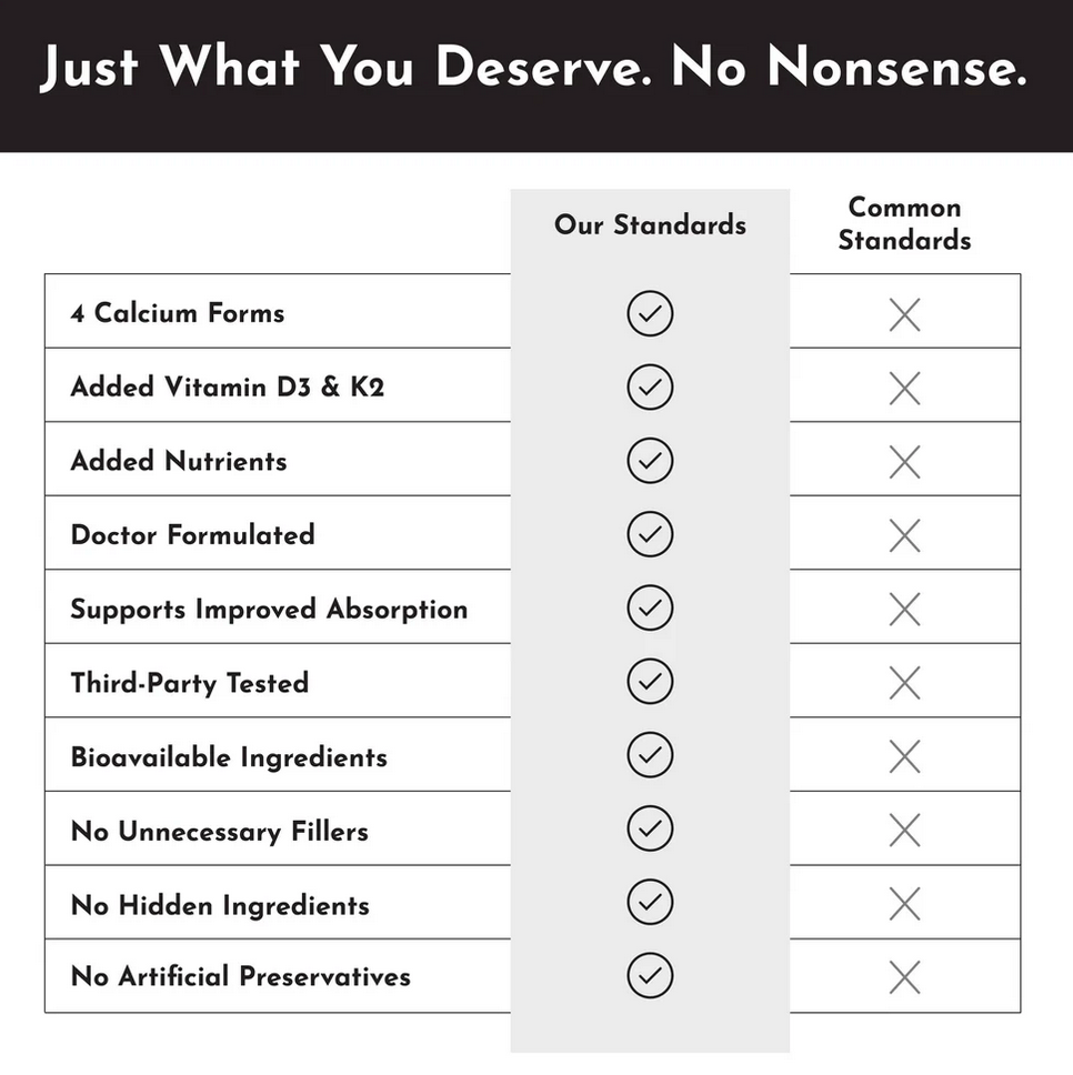 Bone support that goes beyond calcium. With four forms of calcium to help boost absorption and support bone density, plus added vitamin D3 and K2 to guide calcium where it’s needed—bones. Vitamin C, boron, L-lysine, and inulin help support collagen formation, calcium absorption, and gut health. Calcium Complex is more than bone deep. It not only helps support bone health but may also support your joints, heart, and immune system.*