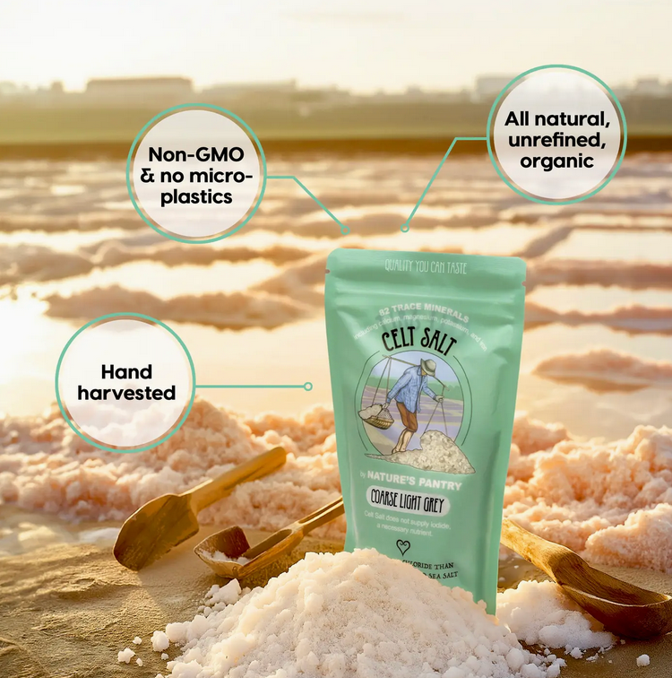 Dried under the gentle caress of the sun and the whispering winds, Celtic Light Grey Salt retains the ocean's moisture, encapsulating a diverse spectrum of essential trace elements. The light grey tint of this exceptional salt is derived from the pristine clay lining of the salt beds where it undergoes its careful harvesting.