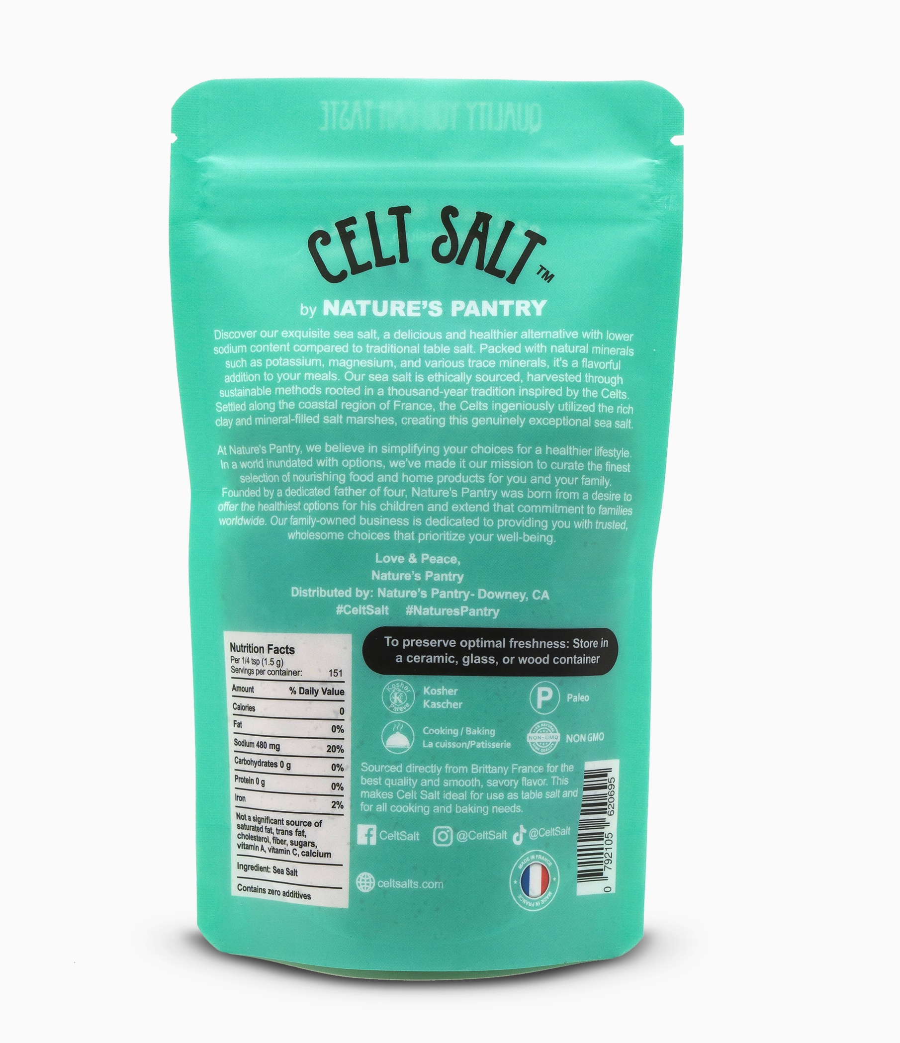 Light Grey Celtic Salt stands as a testament to its natural purity and mineral-rich composition. This coarse, whole crystal salt is a product of meticulous hand harvesting, remaining entirely unrefined and untouched by any processing. It proudly carries non-GMO verification, Kosher certification, and is recognized as a lower sodium and paleo-friendly option.