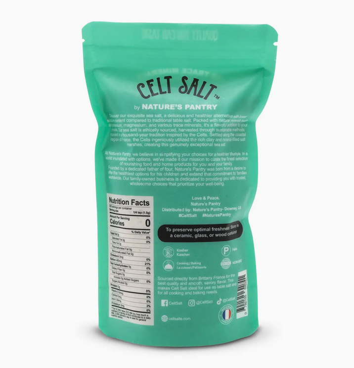Dried under the gentle caress of the sun and the whispering winds, Celtic Light Grey Salt retains the ocean's moisture, encapsulating a diverse spectrum of essential trace elements. The light grey tint of this exceptional salt is derived from the pristine clay lining of the salt beds where it undergoes its careful harvesting.
