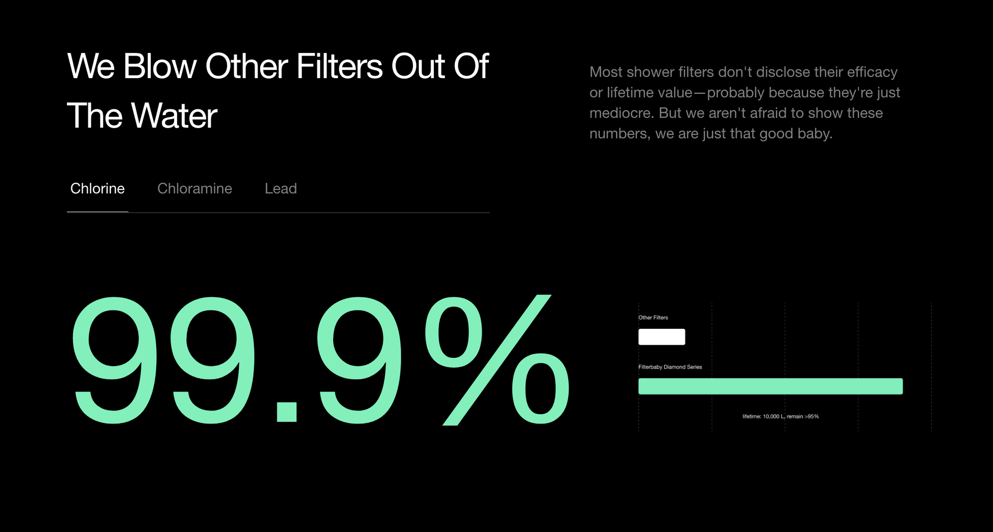 Removes up to 99% of chlorine, chloramine, certain heavy metals, and 40+ other key contaminants as small as 0.00001mm from tap water.